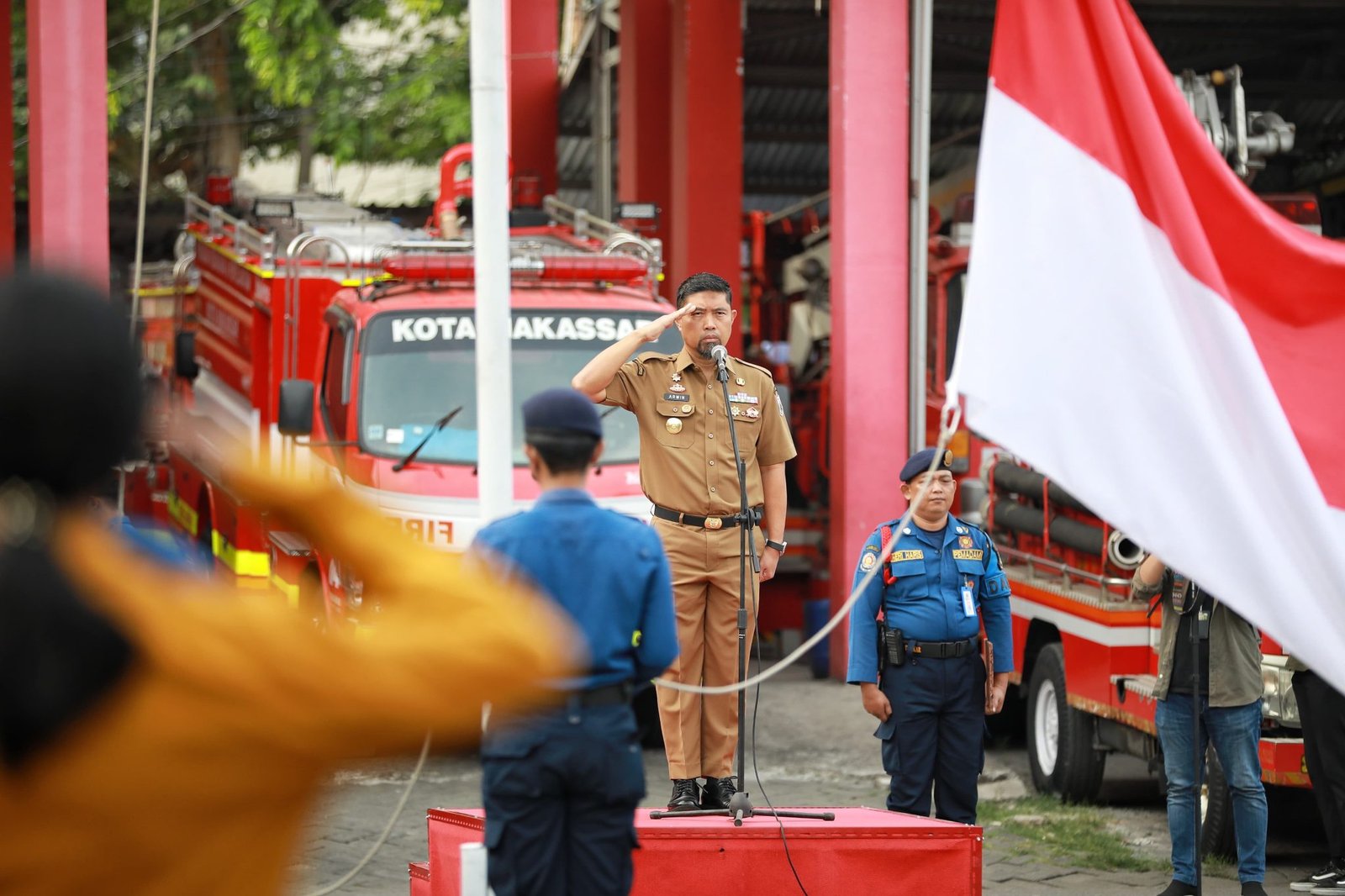 Acara apel tersebut berlangsung dengan khidmat dan dihadiri oleh seluruh jajaran Dinas Pemadam Kebakaran Makassar.