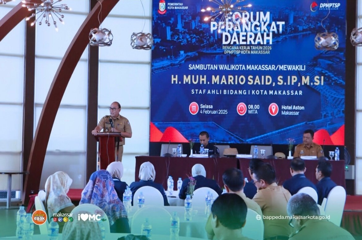 Makassar, SULSELNEWS. id – Kepala Badan Perencanaan Pembangunan Daerah (Bappeda) Kota Makassar, A. Zulkifly, hadir sekaligus menjadi narasumber dalam Forum Perangkat Daerah Kota Makassar 2025 yang diselenggarakan oleh Dinas Penanaman Modal dan Pelayanan Terpadu Satu Pintu Kota Makassar (DPMPTSP) pada 04 Januari 2025.