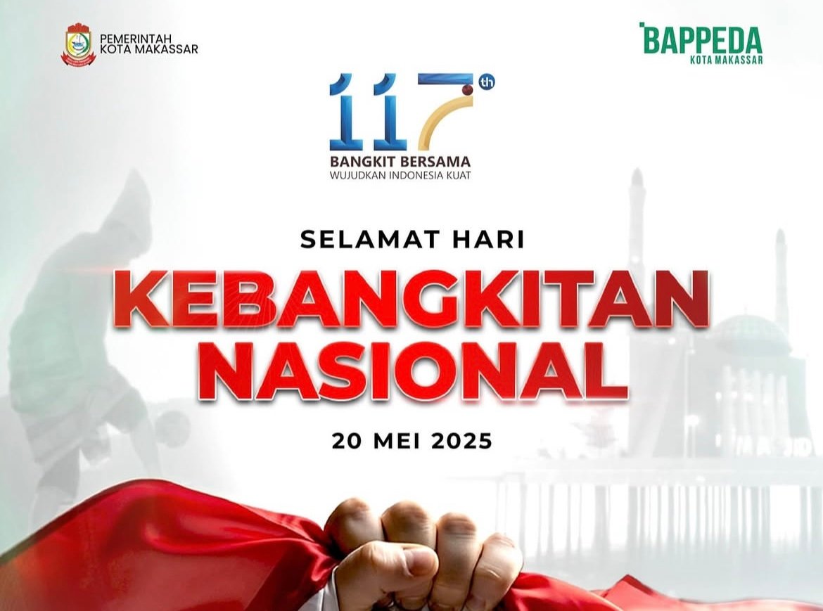 Makassar, SULSELNEWS.is – Dalam semangat memperingati Hari Kebangkitan Nasional ke-117, Badan Perencanaan Pembangunan Daerah (Bappeda) Kota Makassar menyampaikan ucapan Selamat Hari Kebangkitan Nasional kepada seluruh masyarakat.