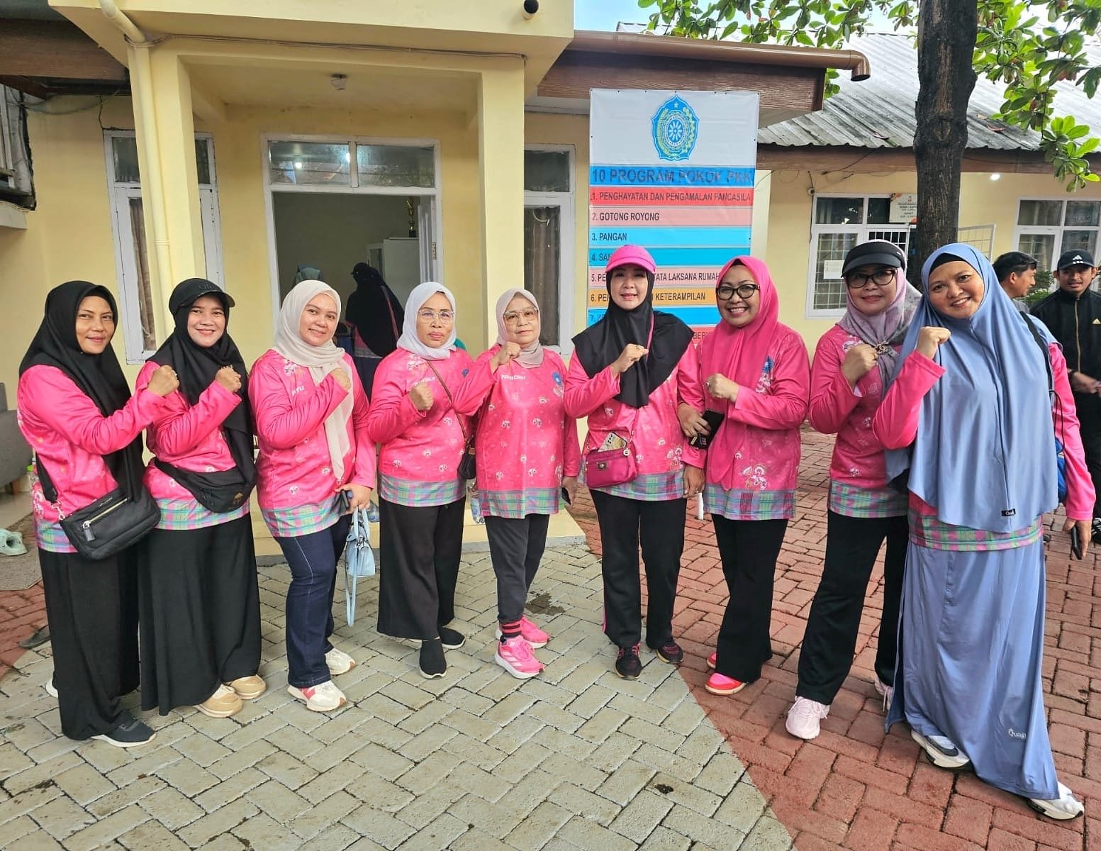 Dengan penuh semangat dan kekompakan, para pengurus TP PKK Kota Makassar mengenakan seragam olahraga bernuansa pink saat melakukan pembersihan dan penataan lingkungan. Fokus pembenahan dilakukan di sekitar kantor PKK Kelurahan Panampu, Rumah Gizi, dan lingkungan sekitarnya.